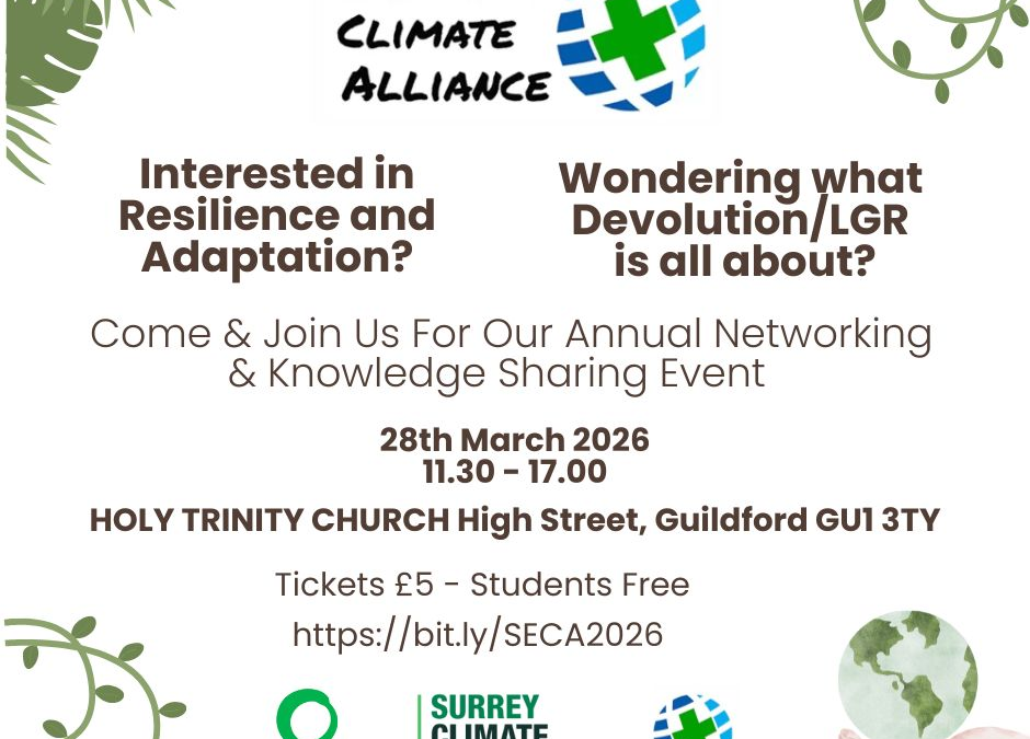 - 2pm: Parallel workshops exploring the topics more deeply. The local government workshop will hold an initial session on devolution and the radical restructuring of our councils, and then split into groups for Surrey, Hampshire and Sussex to look at the local pictures. How do we ensure that climate and nature remain centre stage during this complex and confusing process?